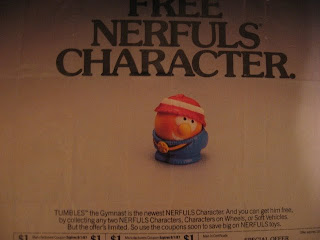 The secrets of this figure were learned pretty early in my collecting of these, and it's pretty damn lucky. I purchased a huge lot of Nerfuls from a guy off of ebay. In the collection I received was a ring binder. The original owner can saved all of the pamphlets that came with the figures, as well as the card backs an box art. They also had the mail-away page for Tumbles the Gymnast.